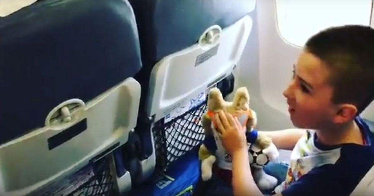 Рональд Макдональд встетился с мальчиком прямо на борту самолета, после чего подарили ему главного символа ЧМ волка «Забиваку»: