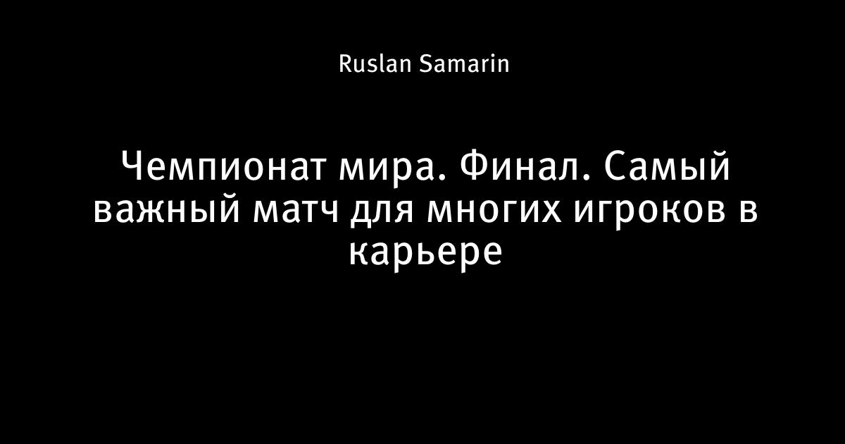 Чемпионат мира. Финал. Самый важный матч для многих игроков в карьере