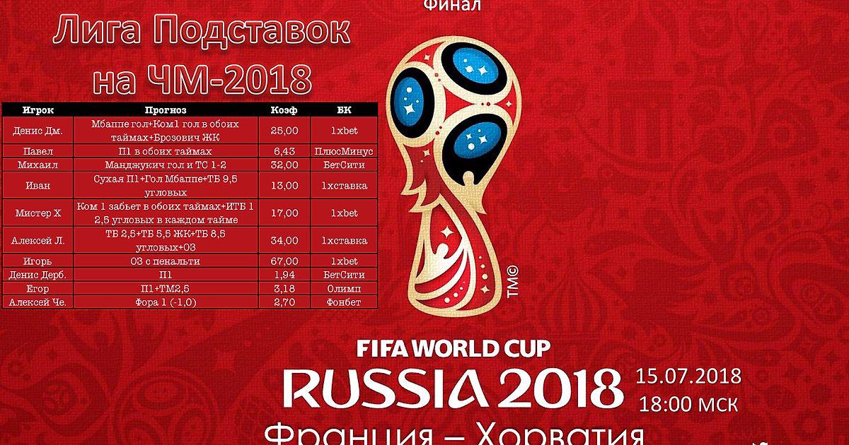 Ниже варианты ставок наших участников на финал чемпионата мира по футболу - 2018: Франция - Хорватия.
