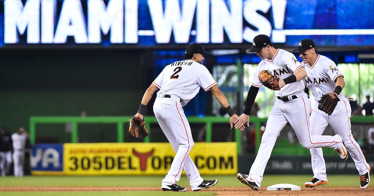 "Майами Марлинс"-"Филадельфия Филлис" 10:5.В 5 иннинге хозяева набрали 8 очков и уже не отдали победу.В 4 иннинге Сезар Эрнандес выбил трипл (2),а Майкел Франко со Скоттом Кингери и Эндрю Кнаппом увеличили преимущество гостей.В 5 иннинге Кэмерон Майбин выбил хоум-ран (2) и хозяева размочили счёт в матче.Затем Брайан Андерсон выбил хоум-ран (8),а Джастин Бур и Дерек Дитрих забежали в дом.После этого Мигель Рохас выбил сингл,а Джей-Ти Реалмуто и Старлин Кастро вывели уже хозяев вперёд.Далее Джастин Бур выбил сингл и Мартин Прадо с Мигелем Рохасом увеличили отрыв хозяев.В 8 иннинге Дерек Дитрих принёс хозяевам ещё одно очко после неразберихи в защите гостей.Реливер хозяев Элисер Эрнандес (2-5) заработал 6 страйков и один флай-аут.