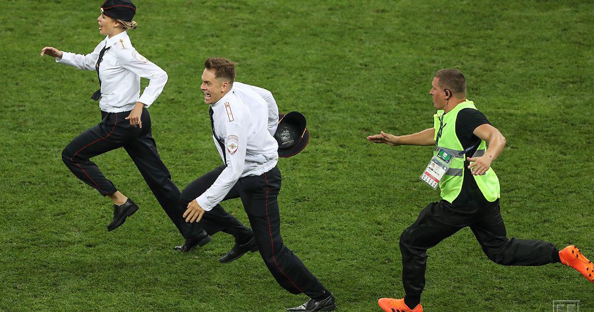 Кажется даже, что сотрудник правопорядка пытается отбить беднягу у Деяна Ловрена.