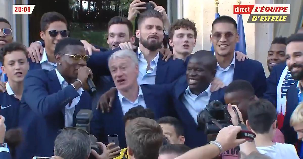 La chanson de N’Golo Kanté en direct de l’Élysée !! 😍 #lequipeCDM pic.twitter.com/8edGfBvvU4