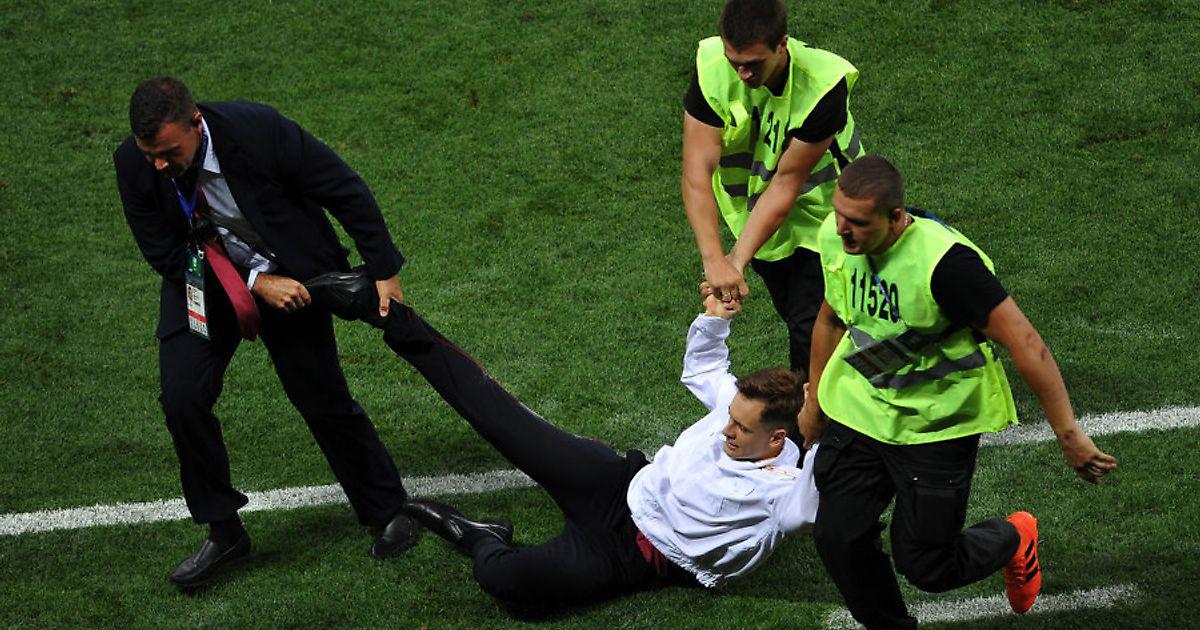 По всей видимости, на стадионе «Лужники» во время финального матча чемпионата мира между Францией и Хорватией сотрудники службы безопасности допустили небольшое упущение. Во втором тайме, когда Франция выигрывала со счетом 2:1, а Хорватия владела мячом и продвигалась к воротам соперника, группа людей выбежала на поле и прервала течение матча, прежде чем нарушителей быстренько словили и выпроводили с газона (в не слишком-то вежливой манере).