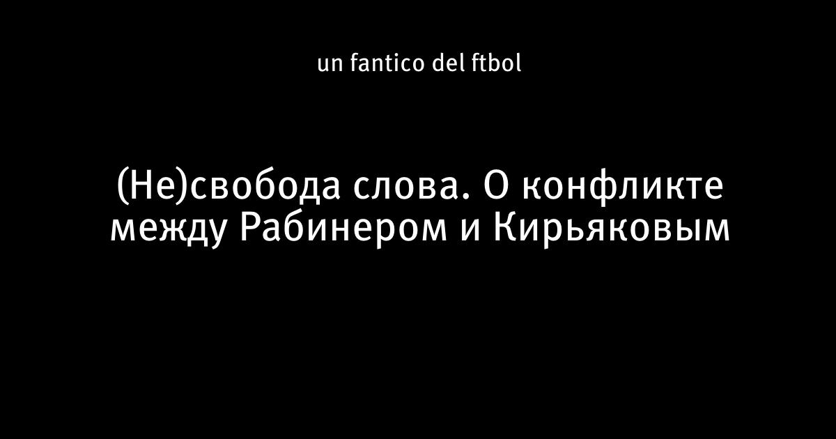 Отшумел праздник чемпионата мира, иностранные гости разъехались по домам, и мы потихоньку возвращаемся на нашу грешную футбольную землю. Впрочем, сказка - на то она и сказка, чтобы быстро заканчиваться и не повторяться каждый день. Как говорится, хорошего понемножку. Приходит время нам всем возвращаться к нашим баранам, в смысле, к делам нашего внутреннего чемпионата, благо до старта очередного сезона РФПЛ остаётся совсем немного времени. И конфликт между Игорем Рабинером и Сергеем Кирьяковым – тоже часть нашей внутренней футбольной кухни. Надо сказать, далеко не самая хорошая.