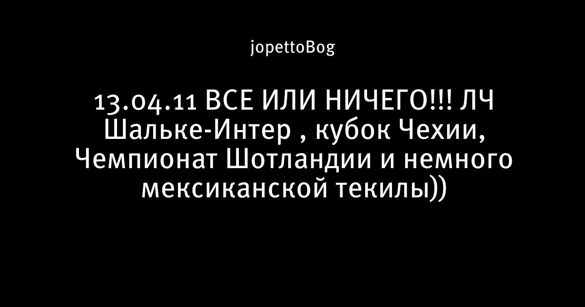 13.04.11 ВСЕ ИЛИ НИЧЕГО!!! ЛЧ Шальке-Интер , кубок Чехии, Чемпионат Шотландии и немного мексиканской текилы))