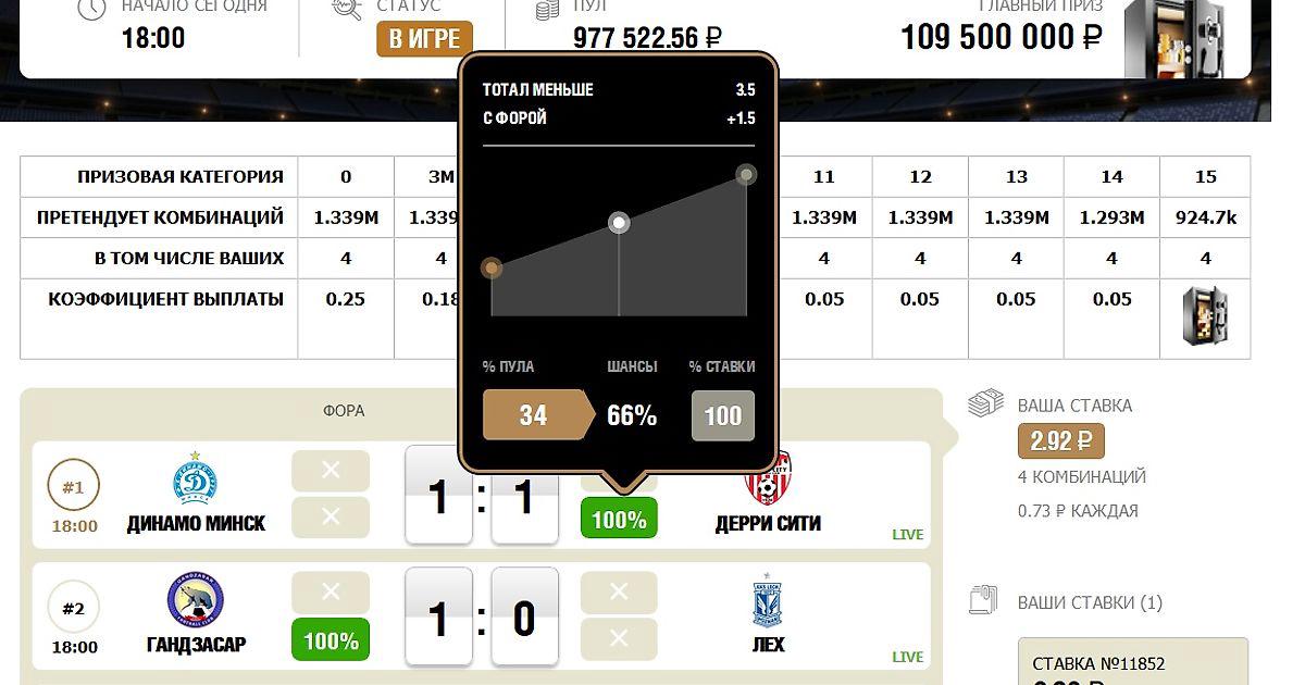 Несколько подробнее о ТОТО-15 в этом посте. Само вышеупомянутое ТОТО - ТУТ. Зарегистрировавшись по ссылке, можно получить приличный бонус на депозит (75% ! ). Не забудьте воспользоваться инструментом (friGate или Browsec) для обхода блокировок, если вы из России.