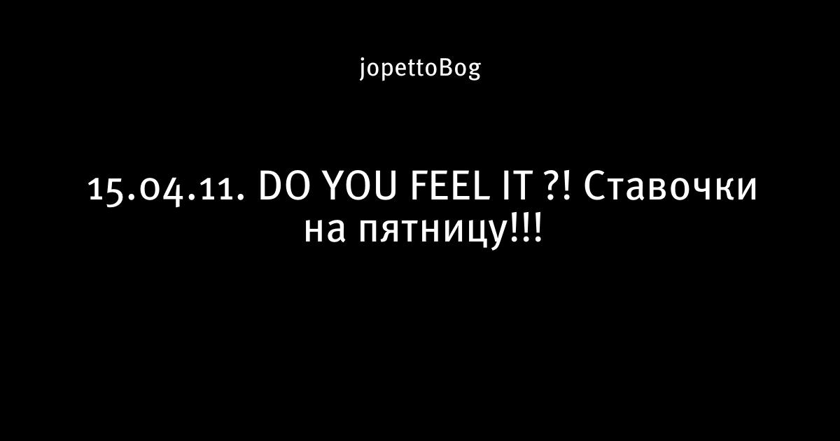 15.04.11. DO YOU FEEL IT ?! Ставочки на пятницу!!!