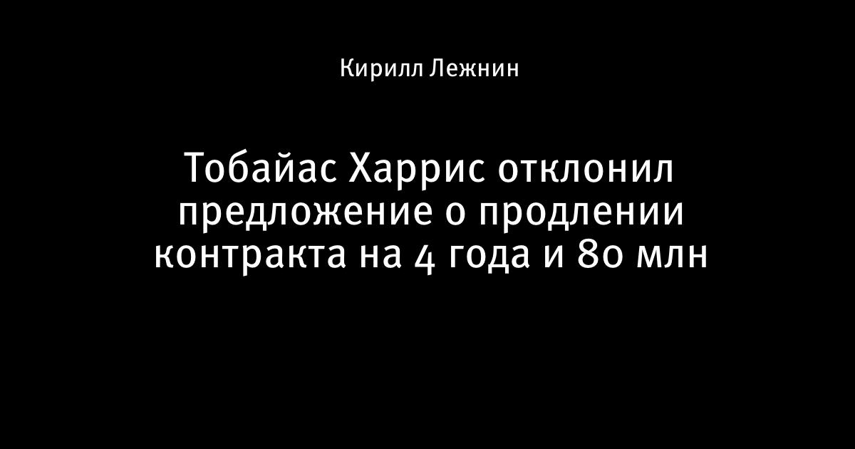 Тобайас Харрис отклонил предложение о продлении контракта на 4 года и 80 млн