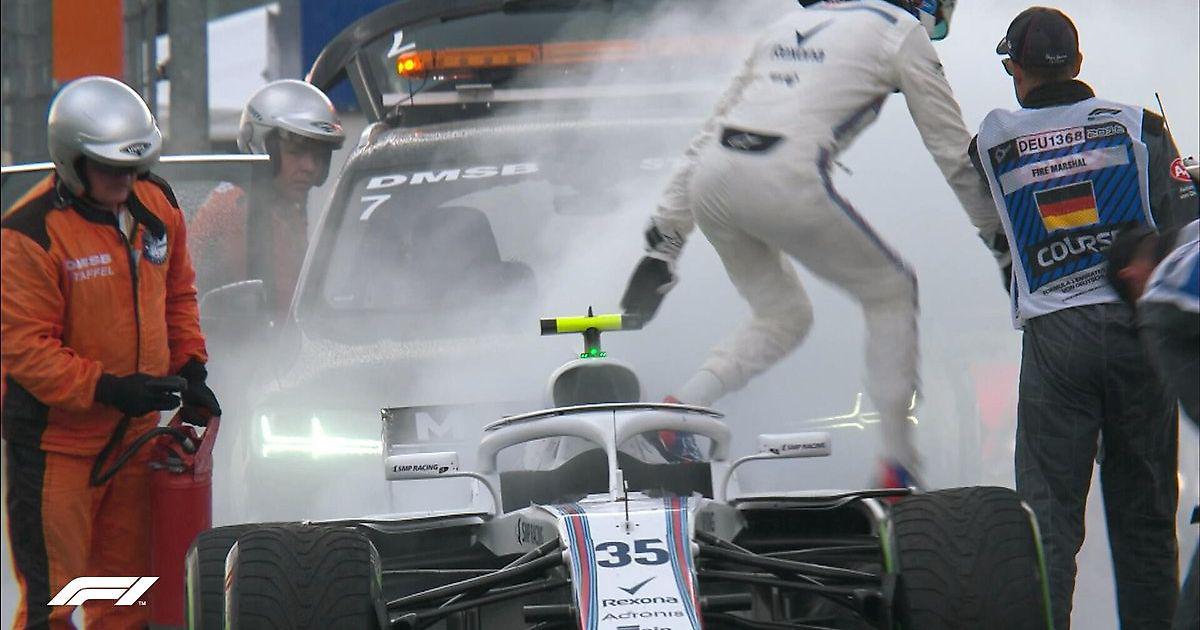 Однако русский пилот не сумел завершить заезд из-за утечки и возгорания масла.