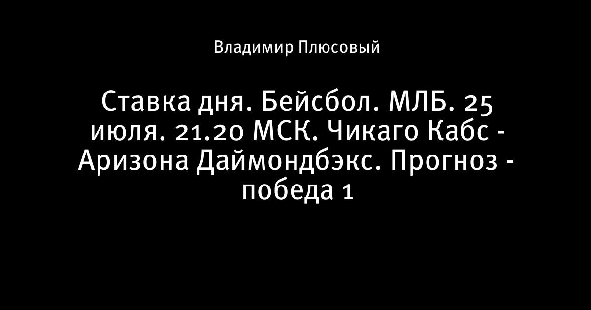 Ставка дня. Бейсбол. МЛБ. 25 июля. 21.20 МСК. Чикаго Кабс - Аризона Даймондбэкс. Прогноз - победа 1