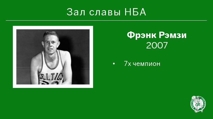 Защитник «Бостон Селтикс» Фрэнк Рэмзи – в Зале славы НБА.