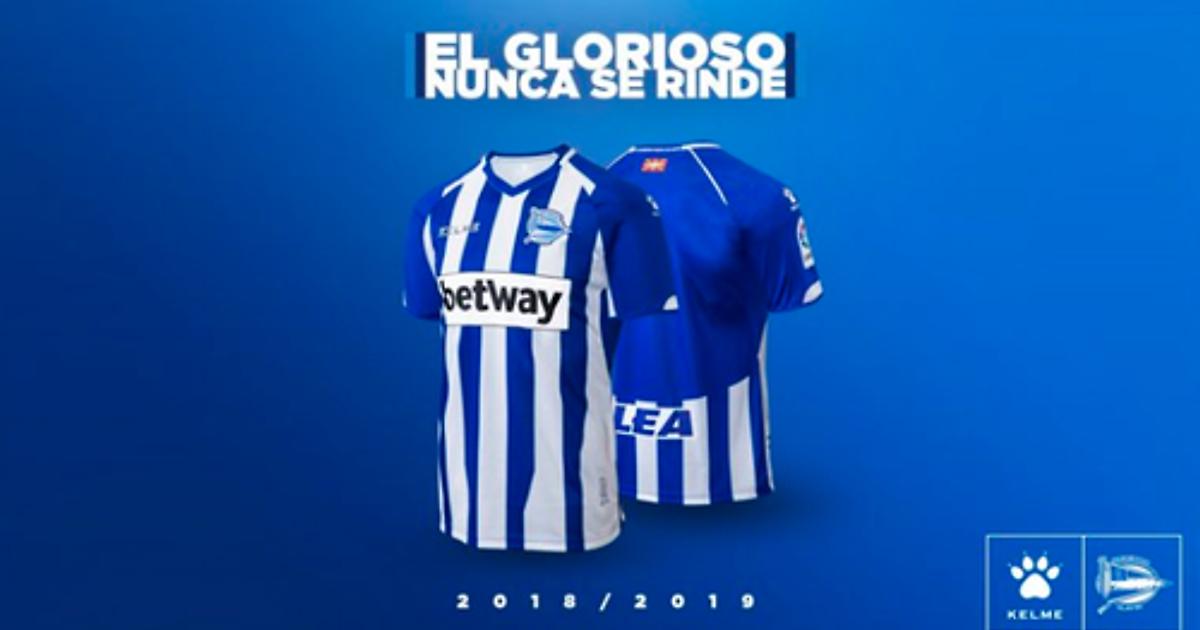Депортиво Алавес(технический спонсор - испанская компания Kelme из города Эльче) представил домашнюю форму традиционного для себя дизайна с вертикальными синими и белыми полосами. На заднем вырезе футболки, чуть выше баскского флага, вышит девиз клуба El glorioso nunca se rinde.