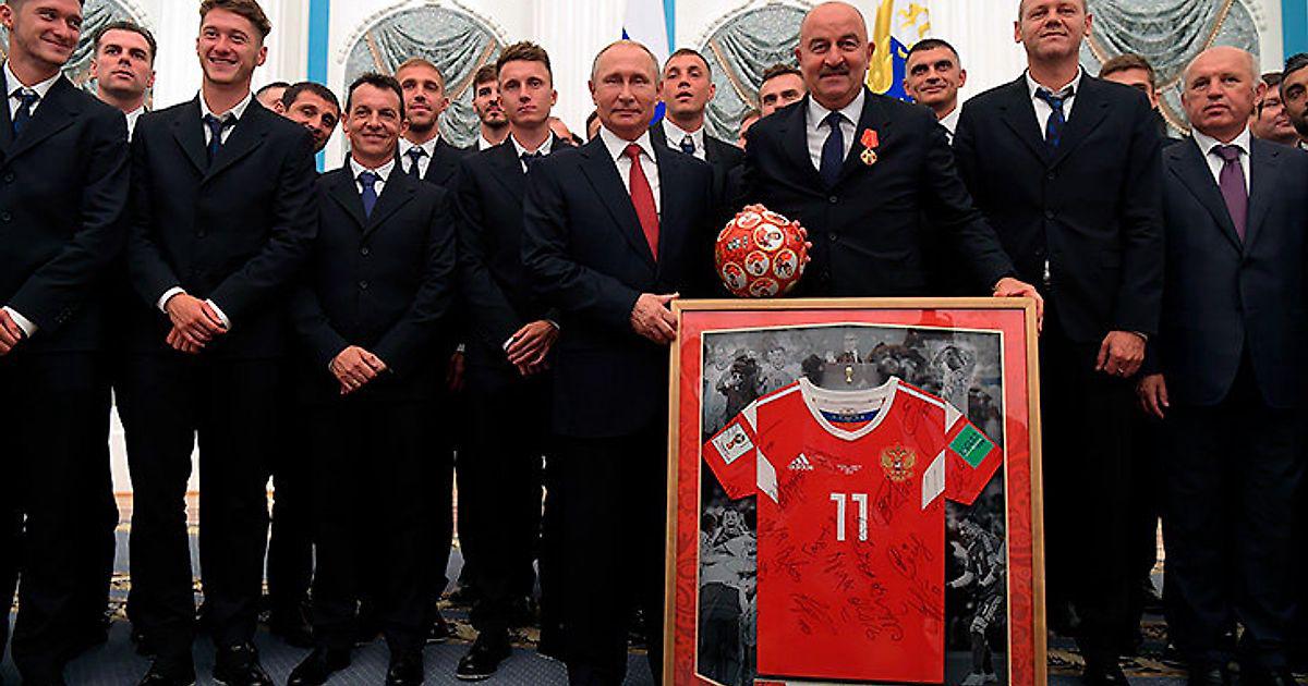 Сборная в Кремле: орден Черчесова, шутка Дзюбы про коньки Путина