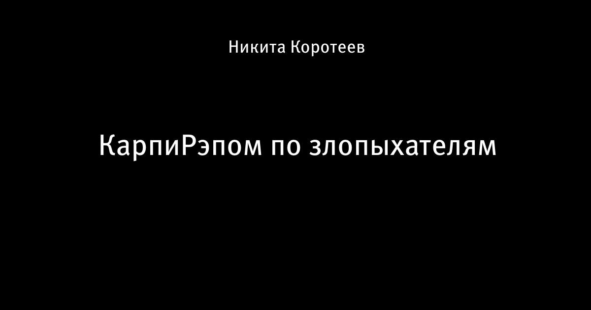 20 апреля 2011, 01:21 КарпиРэпом по злопыхателям видеоответ на предыдущий пост Форум Телевизор 3.0. Автор Никита Коротеев Этот пост опубликован в блоге на Трибуне Sports.ru. Присоединяйтесь к крупнейшему сообществу спортивных болельщиков! Другие посты блога Телевизор 3.0 Валерий Карпин видео