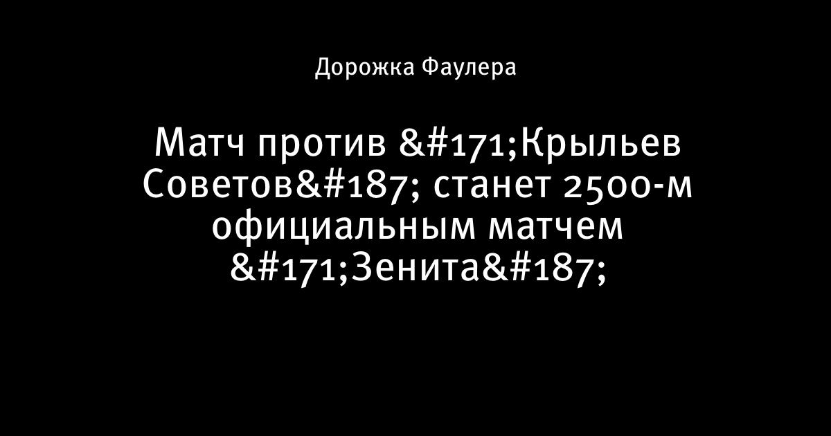 По подсчётам одного из ведущих петербургских футбольных статистиков Матвея Курашова (известного всему зенитовскому рунету под ником mkur), воскресный матч против самарских «Крыльев Советов» станет юбилейным, 2500-м официальным матчем «Зенита» на национальном и международном уровне за всю историю команды.