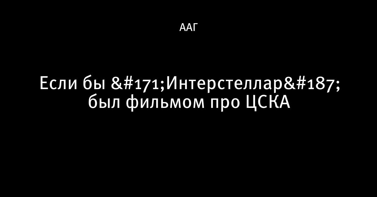 30 июля 2018, 16:08 Если бы «Интерстеллар» был фильмом про ЦСКА Автор ААГ Этот пост опубликован в блоге на Трибуне Sports.ru. Присоединяйтесь к крупнейшему сообществу спортивных болельщиков! Другие посты блога Red Blue Blog Хетаг Хосонов Василий Березуцкий Алан Дзагоев ЦСКА