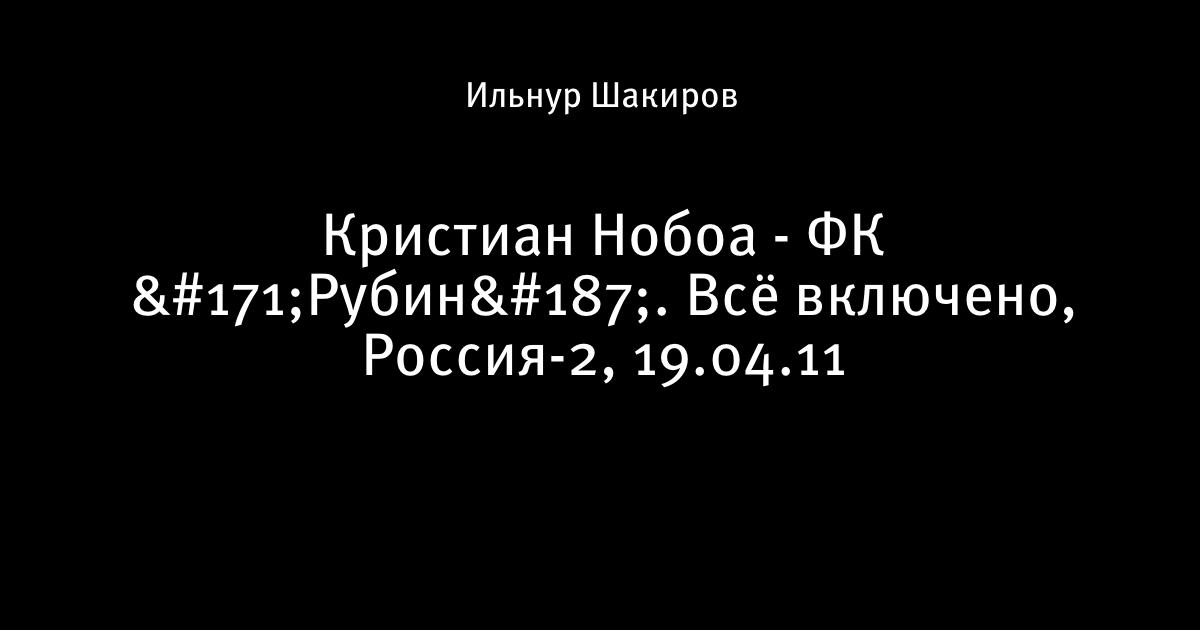 25 апреля 2011, 16:00 Кристиан Нобоа - ФК «Рубин». Всё включено, Россия-2, 19.04.11 Автор Ильнур Шакиров Этот пост опубликован в блоге на Трибуне Sports.ru. Присоединяйтесь к крупнейшему сообществу спортивных болельщиков! Другие посты блога Рубин - Онлайн видео Курбан Бердыев Рубин Амкар Кристиан Нобоа