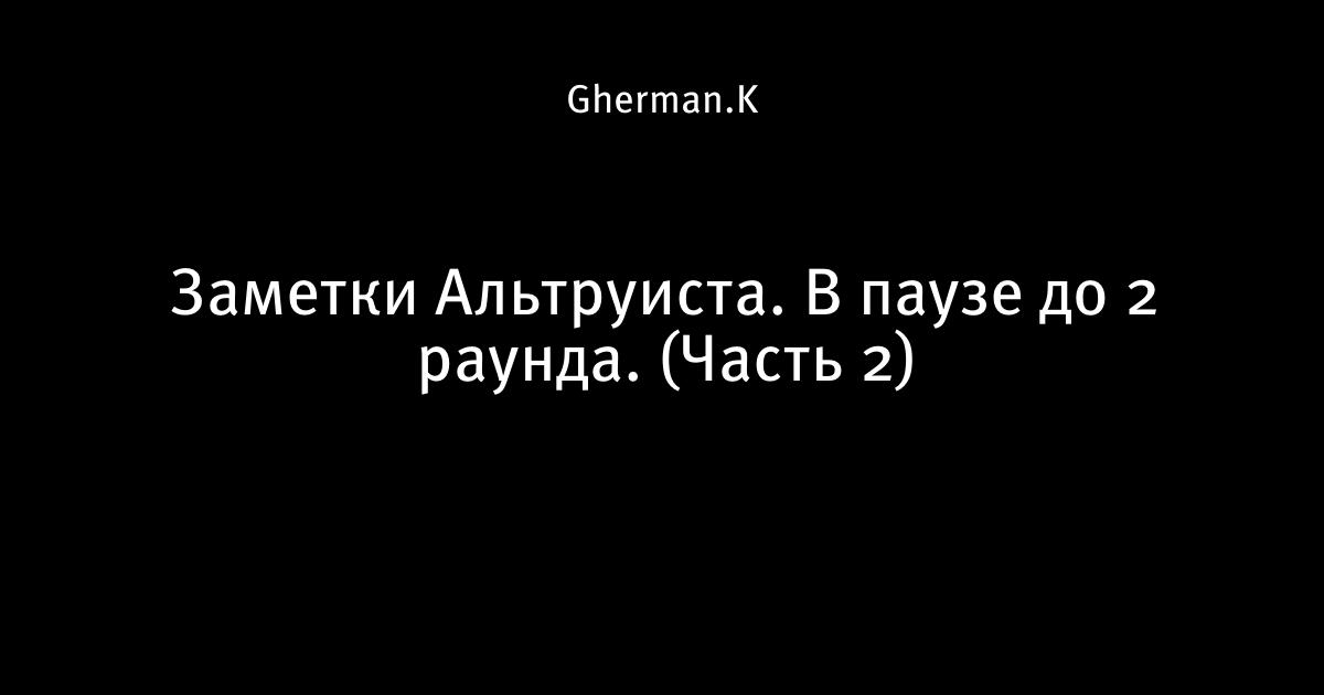 Заметки Альтруиста. В паузе до 2 раунда. (Часть 2)