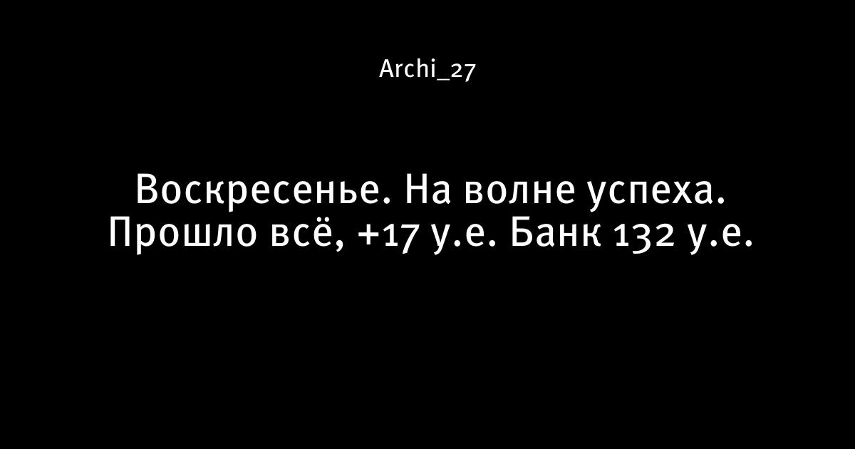 Воскресенье. На волне успеха. Прошло всё, +17 у.е. Банк 132 у.е.