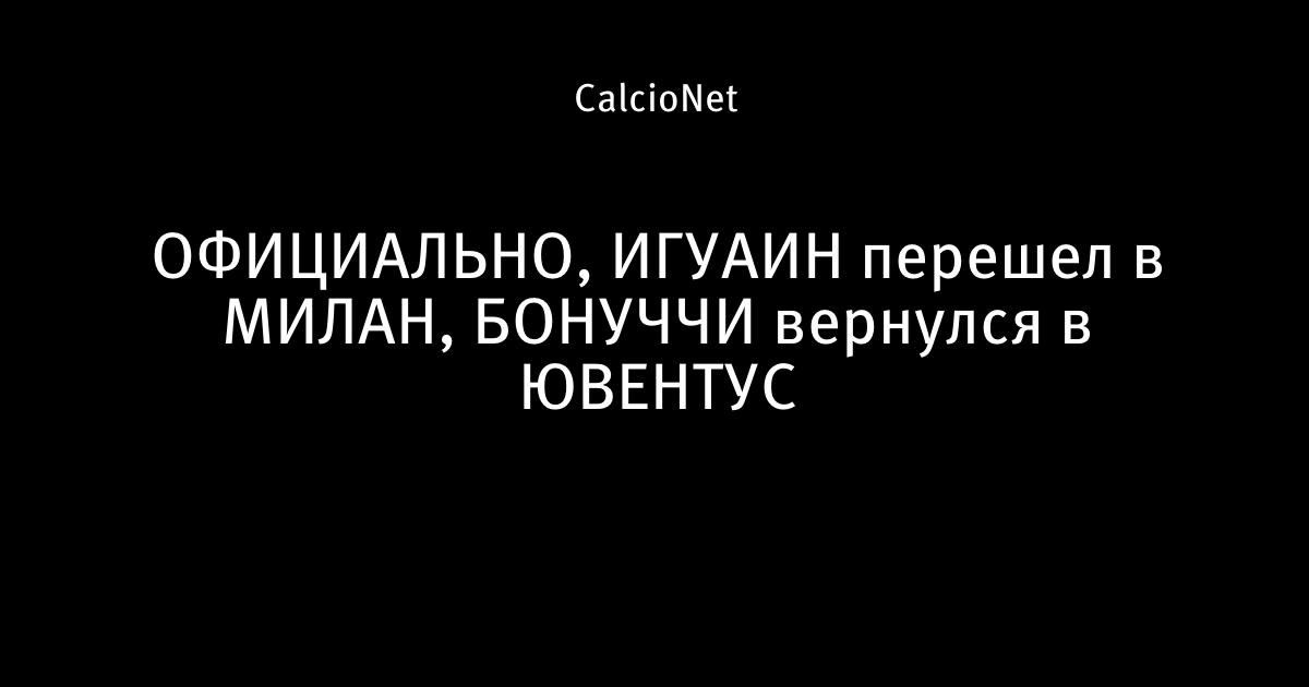 ОФИЦИАЛЬНО, ИГУАИН перешел в МИЛАН, БОНУЧЧИ вернулся в ЮВЕНТУС