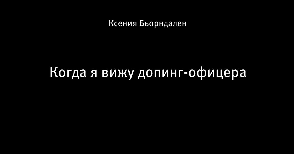 3 августа 2018, 17:29 Когда я вижу допинг-офицера Этот пост написан пользователем Sports.ru, начать писать может каждый болельщик (сделать это можно здесь). Автор Ксения Бьорндален Этот пост опубликован в блоге на Трибуне Sports.ru. Присоединяйтесь к крупнейшему сообществу спортивных болельщиков! Другие посты блога Доча-солнышко прыжки в высоту сборная России Данил Лысенко допинг