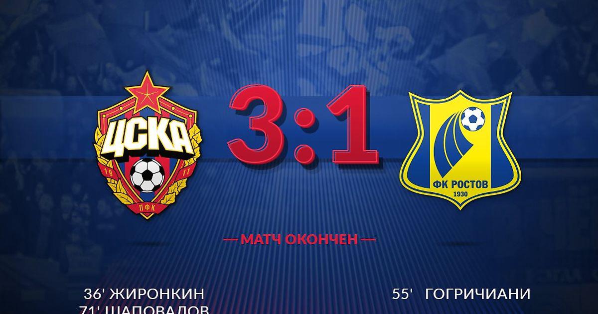 Голы в составе московской команды на свой счёт записали полузащитник Виталий Жиронкин и нападающий Егор Шаповалов, забившие на 36-й и 71-й минуте соответственно. Также хавбек ЦСКА Тимур Пухов успешно реализовал пенальти на 86-й минуте и установил конечный счёт встречи. Автором единственного забитого мяча ростовчан стал полузащитник Гоча Гогричиани.