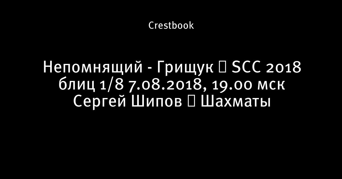 5 августа 2018, 22:21 Непомнящий - Грищук ⚡️ SСС 2018 блиц 1/8 ⏰ 7.08.2018, 19.00 мск 🎤 Сергей Шипов ♕ Шахматы Автор Crestbook Этот пост опубликован в блоге на Трибуне Sports.ru. Присоединяйтесь к крупнейшему сообществу спортивных болельщиков! Другие посты блога Увлекательные шахматы Ян Непомнящий Александр Грищук Сергей Шипов