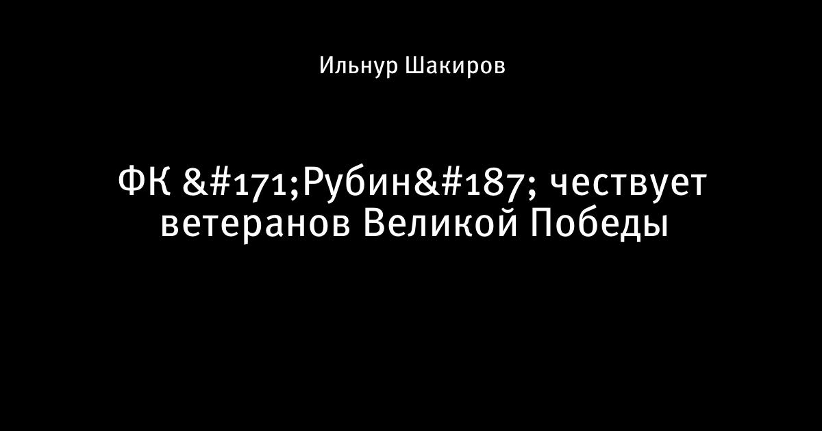 11 мая 2011, 23:16 ФК «Рубин» чествует ветеранов Великой Победы http://fcrubin.ether.tv/vod/1210781338 Автор Ильнур Шакиров Этот пост опубликован в блоге на Трибуне Sports.ru. Присоединяйтесь к крупнейшему сообществу спортивных болельщиков! Другие посты блога Рубин - Онлайн