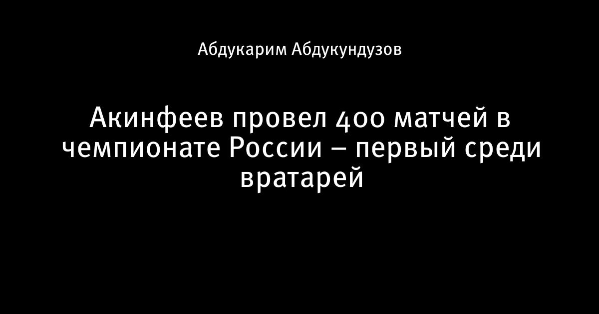 Акинфеев – первый вратарь в этом списке, он достиг этого рубежа самым молодым. Ему 32 года и 125 дней. Он превзошел достижение 46-летней давности торпедовца Виктора Шустикова, который в 1972 году сыграл 400-й матч в возрасте 33 лет и 78 дней.