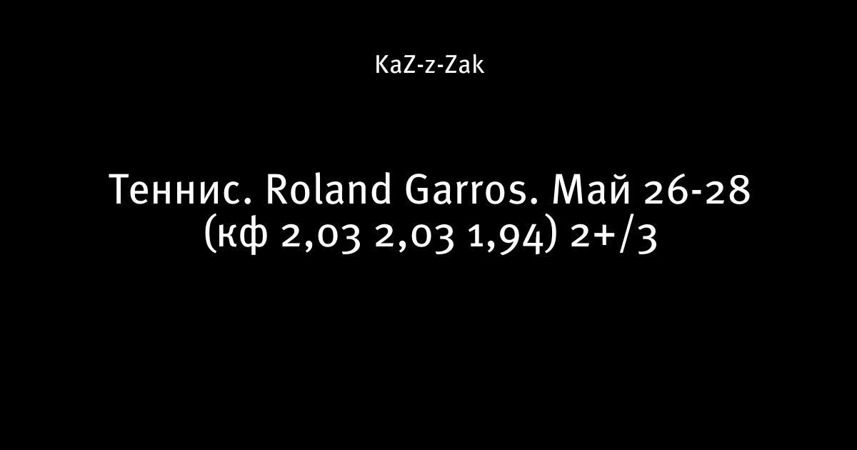 Теннис. Roland Garros. Май 26-28 (кф 2,03 2,03 1,94) 2+/3