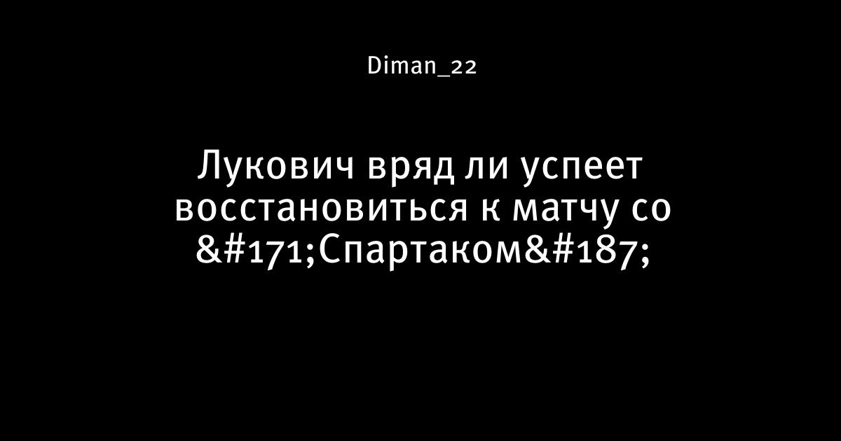 В итоге, совершенно точно можно говорить о том, что Лукович не выйдет на поле в эту субботу в игре с «Томью».