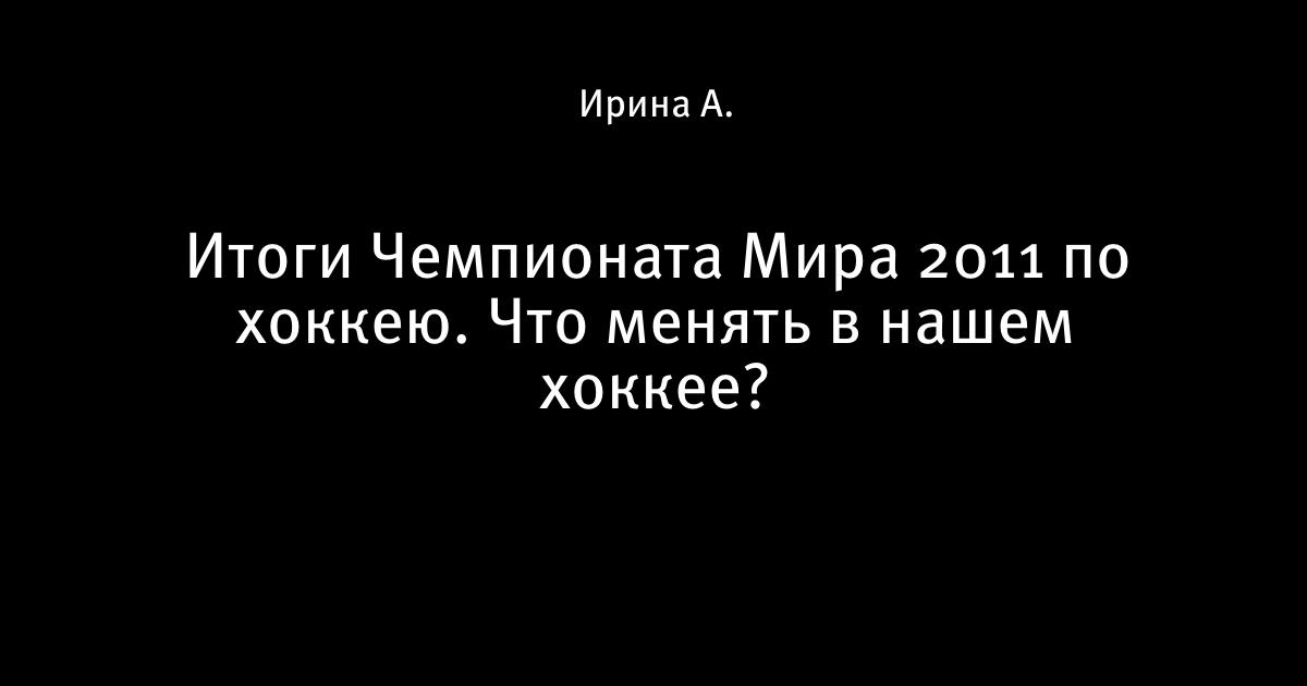 Итоги Чемпионата Мира 2011 по хоккею. Что менять в нашем хоккее?