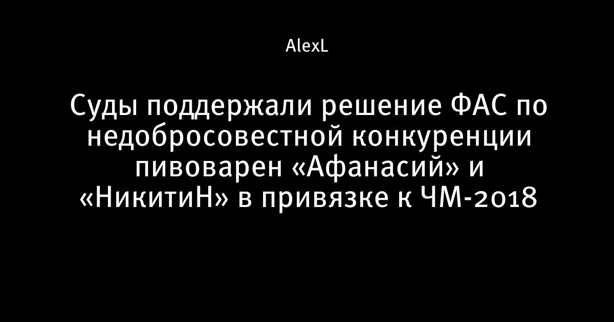 Суды поддержали решение ФАС по недобросовестной конкуренции пивоварен «Афанасий» и «НикитиН» в привязке к ЧМ-2018