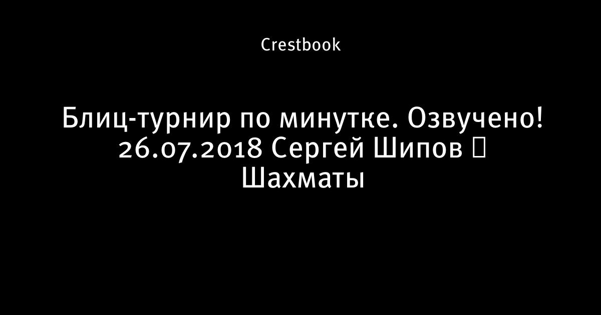 Блиц-турнир по минутке. Озвучено! ⚡ 26.07.2018 🎤 Сергей Шипов ♕ Шахматыhttps://www.youtube.com/watch?v=_5RjHgeIoCEБлиц-турниры Сергея Шипова - https://www.youtube.com/playlist?list=PL8lEsilEs25Dhbbkwd9Tic4dvV4sYof0oПодпишитесь на канал Crestbook! - https://www.youtube.com/user/Crestbook?sub_confirmation=1Обсудить на форуме - http://kasparovchess.crestbook.com/threads/7341