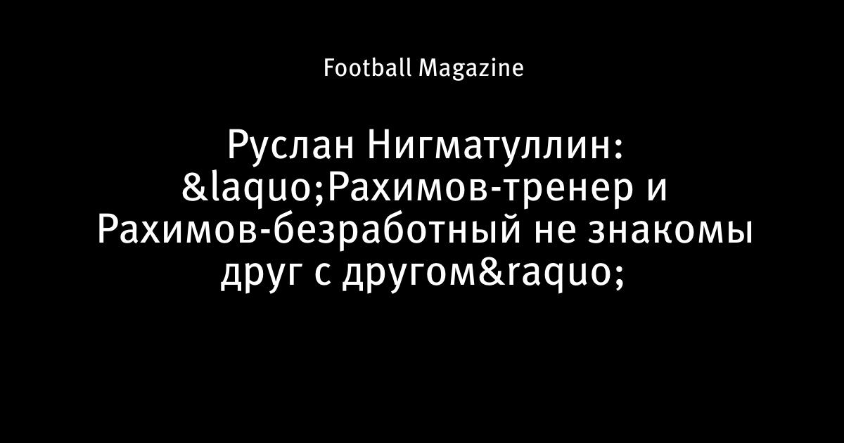 Руслан Нигматуллин: «Рахимов-тренер и Рахимов-безработный не знакомы друг с другом»