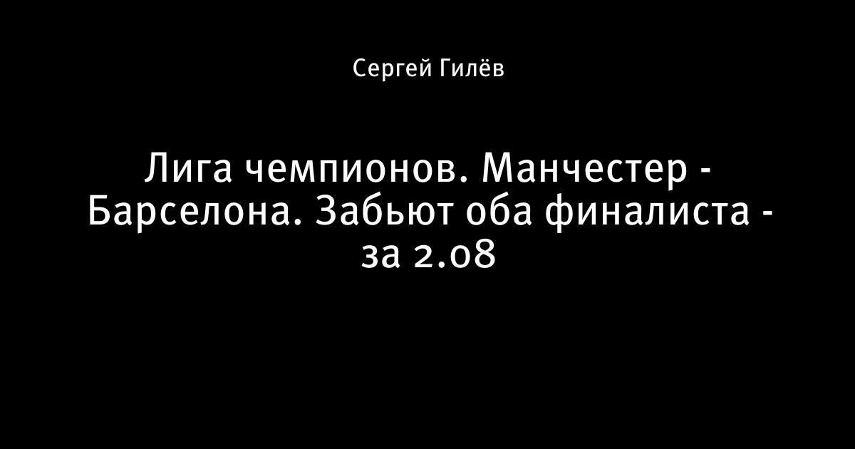 Лига чемпионов. Манчестер - Барселона. Забьют оба финалиста - за 2.08