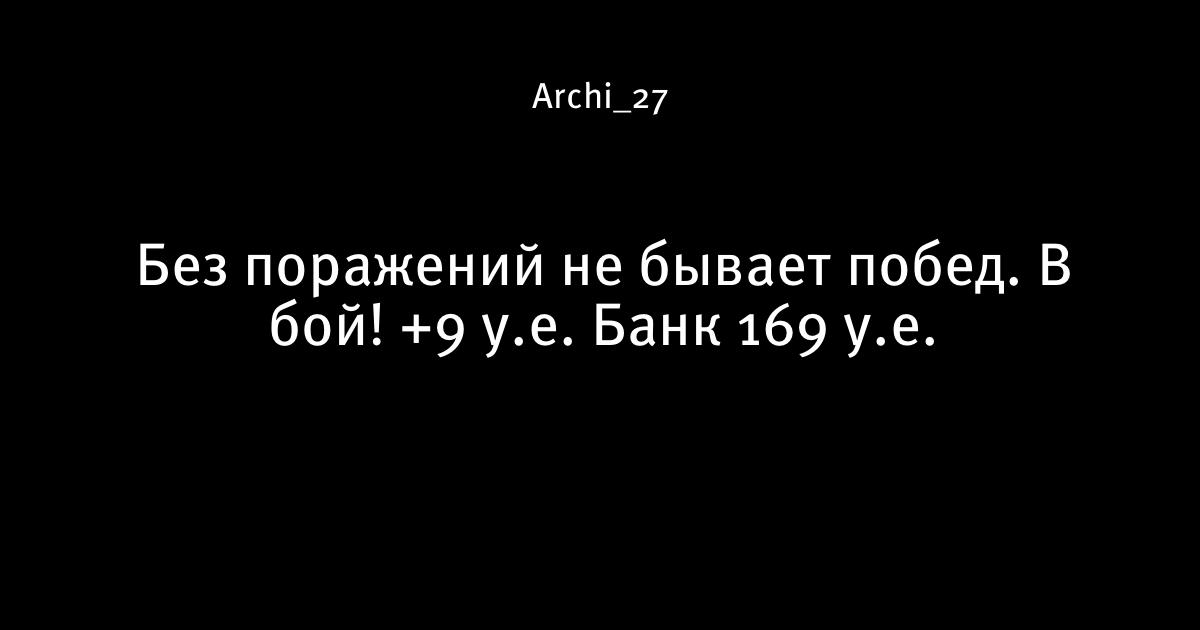 Без поражений не бывает побед. В бой! +9 у.е. Банк 169 у.е.