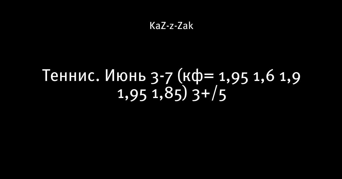 Теннис. Июнь 3-7 (кф= 1,95 1,6 1,9 1,95 1,85) 3+/5
