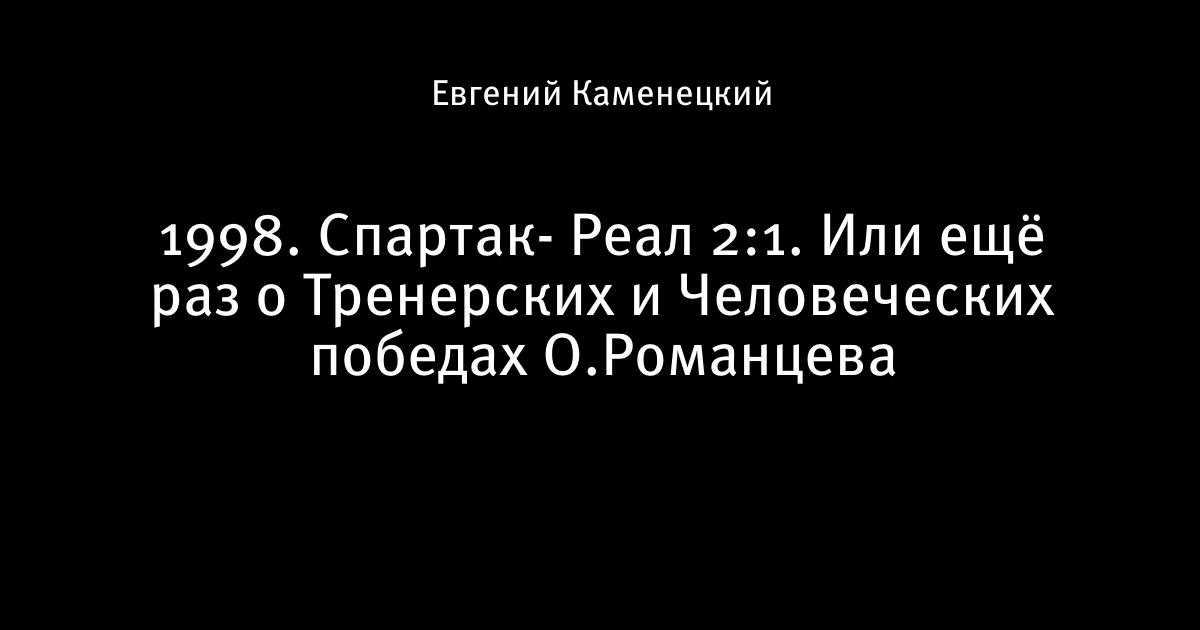 1998. Спартак- Реал 2:1. Или ещё раз о Тренерских и Человеческих победах О.Романцева