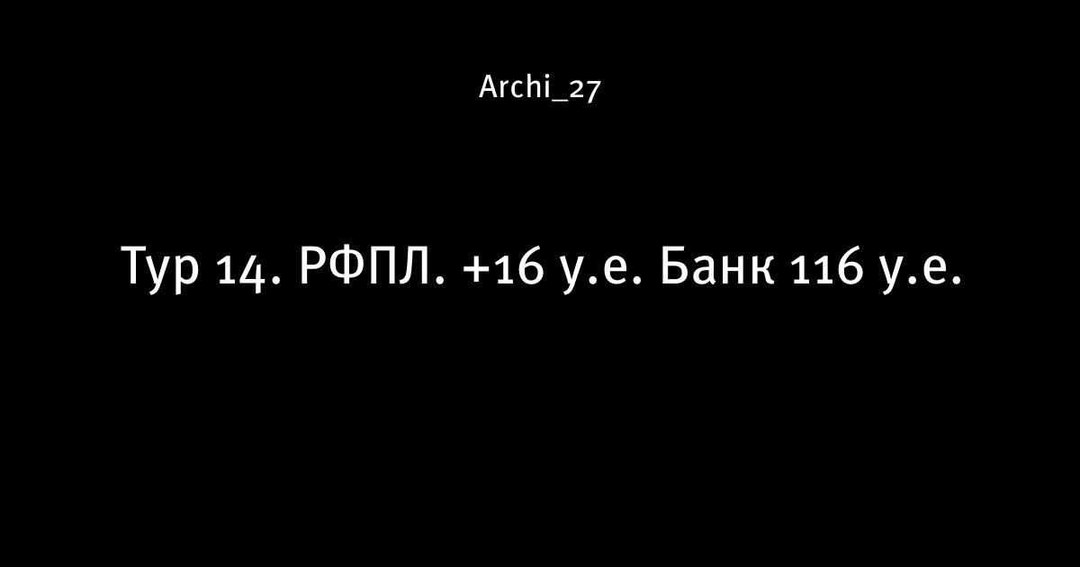 Тур 14. РФПЛ. +16 у.е. Банк 116 у.е.