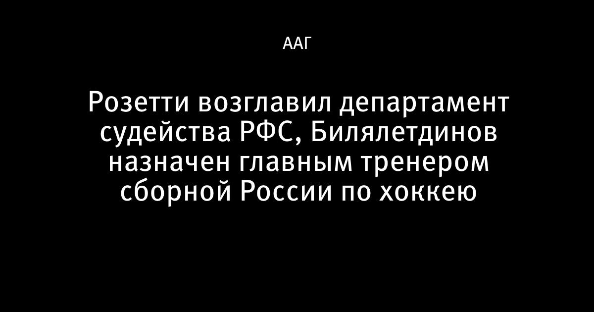 Розетти возглавил департамент судейства РФС, Билялетдинов назначен главным тренером сборной России по хоккею