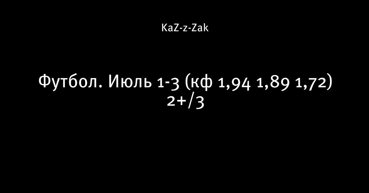 Футбол. Июль 1-3 (кф 1,94 1,89 1,72) 2+/3