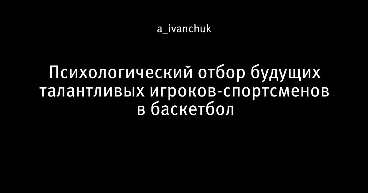 Психологический отбор будущих талантливых игроков-спортсменов в баскетбол