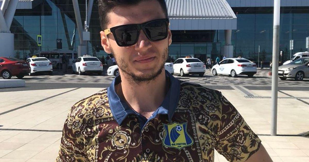А пресс-атташе «Ростова» Никита Кириленко опубликовал свою фотографию в футболке ковровой расцветки. Фото сделано перед выездом команды в Тулу на матч 5-го тура РПЛ против Арсенала: