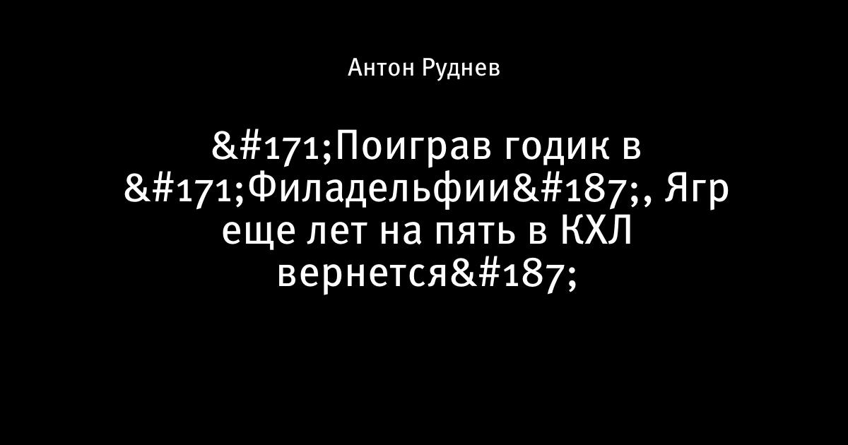 «Поиграв годик в «Филадельфии», Ягр еще лет на пять в КХЛ вернется»