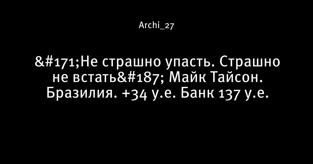 «Не страшно упасть. Страшно не встать» Майк Тайсон. Бразилия. +34 у.е. Банк 137 у.е.
