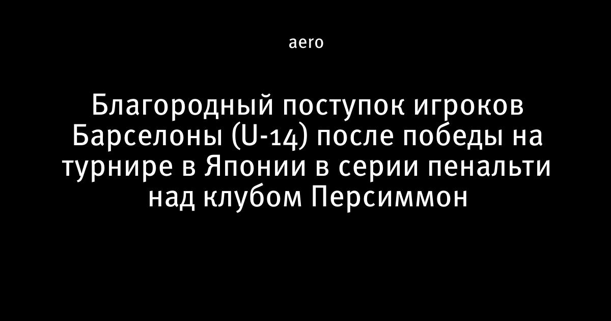 26 августа 2018, 20:47 Благородный поступок игроков Барселоны (U-14) после победы на турнире в Японии в серии пенальти над клубом Персиммон Автор aero Этот пост опубликован в блоге на Трибуне Sports.ru. Присоединяйтесь к крупнейшему сообществу спортивных болельщиков! Другие посты блога Вы это видели?