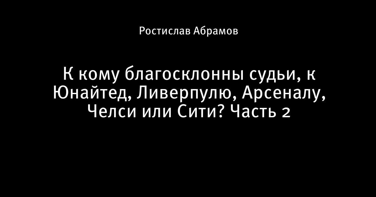 К кому благосклонны судьи, к Юнайтед, Ливерпулю, Арсеналу, Челси или Сити? Часть 2