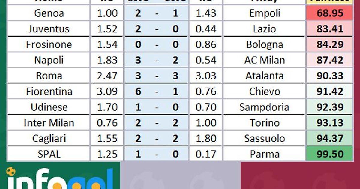 Оценка справедливости результатов 2-го тура Серии А от Infogol
