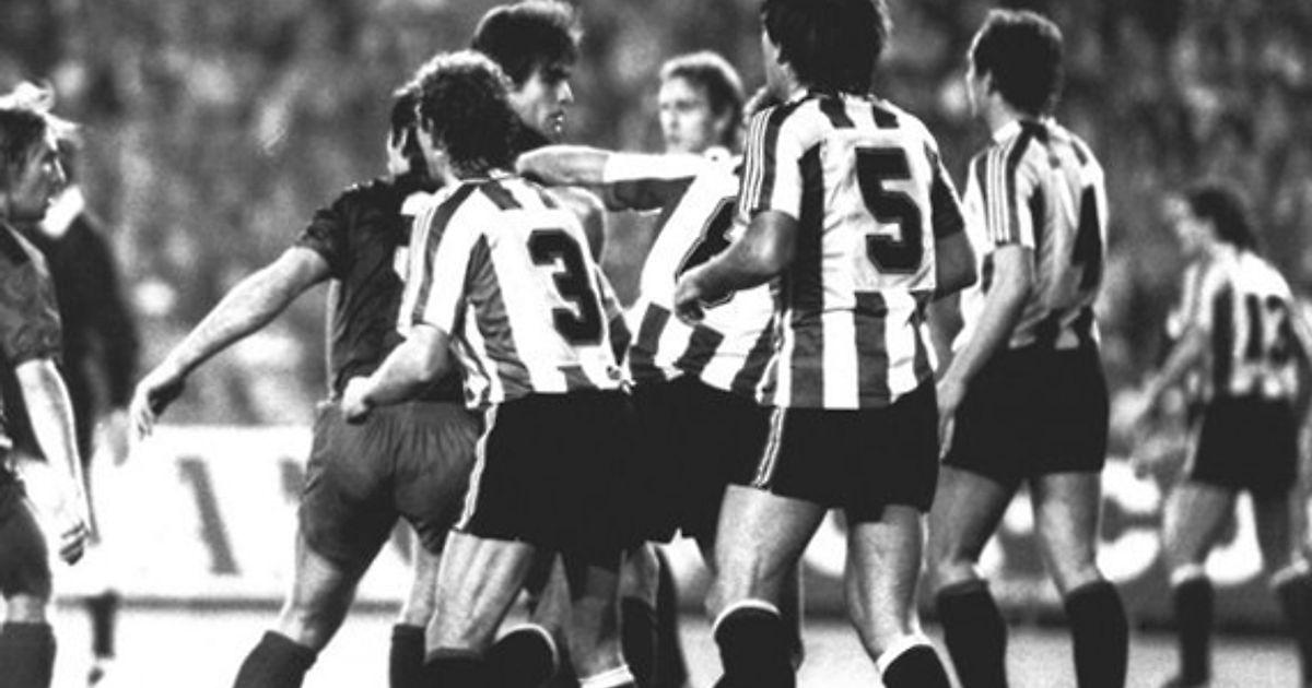 После этого он забил "Эль Гол". Это было на "Бернабеу" в финале Кубка Короля против "Барселоны" 25 мая 1984 года, и этот день помнят как день, когда "Атлетик" завоёвывал свой последний титул, и как один из наиболее жестких матчей. Диего Армандо Марадона начал бойню, пытаясь отомстить Андони Гойкоэчеа[4], который 8 месяцев назад на "Камп Ноу" влетел ему в ноги, совершив самый ужасный подкат за всю историю испанского футбола и стоившей ему 18 матчей дисквалификации. Таким же ужасным был удар Мигеля Анхеля Солы[5] от Марадоны в "Битве на Бернабеу", за который аргентинец получил дисквалификацию на 4 месяца. Это была его последняя игра за "Барсу". Но никто не отнимет у Эндики (наконец-то Эндики), гол который он забил на 11-ой минуте, за 80 минут до того, как на газоне разгорелось насилие, гол за который его все помнят.